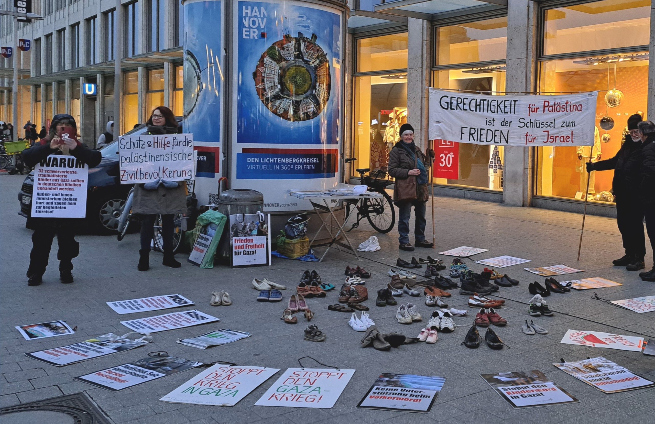 Passend zu unserem Zwischenziel am 28. Januar ein Bild aus dem Dezember 2024, als wir unsere Mahnwache am Kröpcke abhielten.